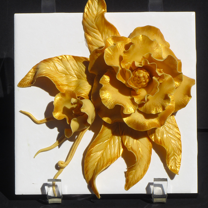 Decorative hand sculptured / painted gold flower in clay on a small piece of tile by Shiva Size : 6 x 6 Leave a Reply Cancel replyCommentName * Email * Website Save my name, email, and website in this browser for the next time I comment.